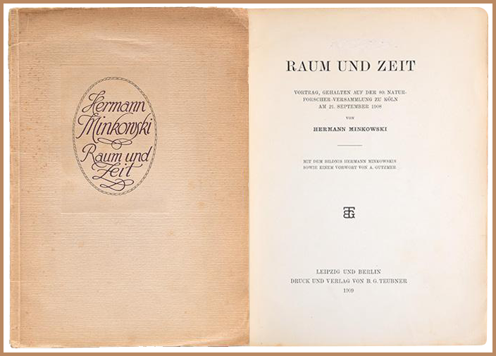 «Взгляды, которые я хочу перед вами развить, возникли на экспериментально-физической основе. В этом заключается их сила. Их тенденция радикальна. Отныне пространство само по себе и время само по себе низводятся до роли теней, и лишь некоторый вид соединения обоих должен еще сохранить самостоятельность». (стр.1 «Raum und Zeit»). См. так же: 1. «Пространство и время*», Г.Минковский / «Принцип относительности. Сб. работ по специальной теории относительности», М-1973, стр.167; 2. «Размышления и воспоминания физика», *Борн М., М-1977, стр.86.  * Макс Борн (1882-1970гг.) — немецкий физик-теоретик и математик, один из создателей квантовой механики, Лауреат Нобелевской премии по физике (1954), за выдающиеся заслуги в развитии квантовой механики.