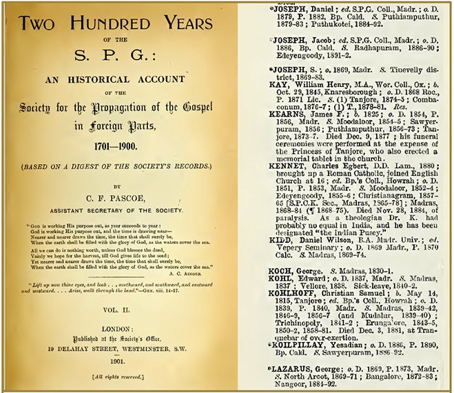 Фото 7: «Двести лет *С.П.Г.: исторический отчет Общества по распространению Евангелия в зарубежных странах, 1701-1900г.», London – 1901, Vol.II, p.918), где немного говортся о Пр.Дж.Ф.Кернсе.
