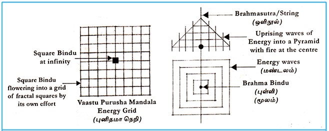 Фото 3: “Square Bindu at infinity. Square Bindu flovering into a grid of fractal squares by its own effort”. «Квадрат Бинду в бесконечность. Квадрат Бинду «распускающийся» своими собственными силами в решетку фрактальных квадратов». (“The scientific edifice of Brihadeeswara Temple, Tanjore, Tamilnadu”, A Shilpi speaks series -18, Chennai – 2003, p.12).