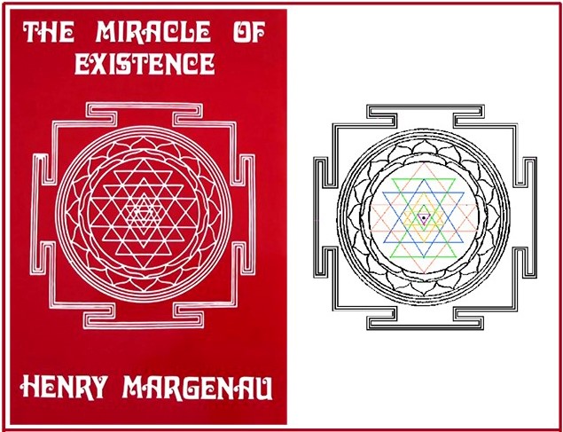 Фото 3: «The miracle of existence”, Henry Margenau, 1984, p. 97 – «Разум можно рассматривать, как поле в принятом физическом смысле, его ближайшим аналогом возможно является поле вероятности». На фото справа: Шри Янтра изображает союз полярностей, женский и мужской принцип, 9 треугольников, исходящих из «точки Бинду» — точки, где встречаются физическая вселенная и непроявленный источник.