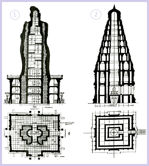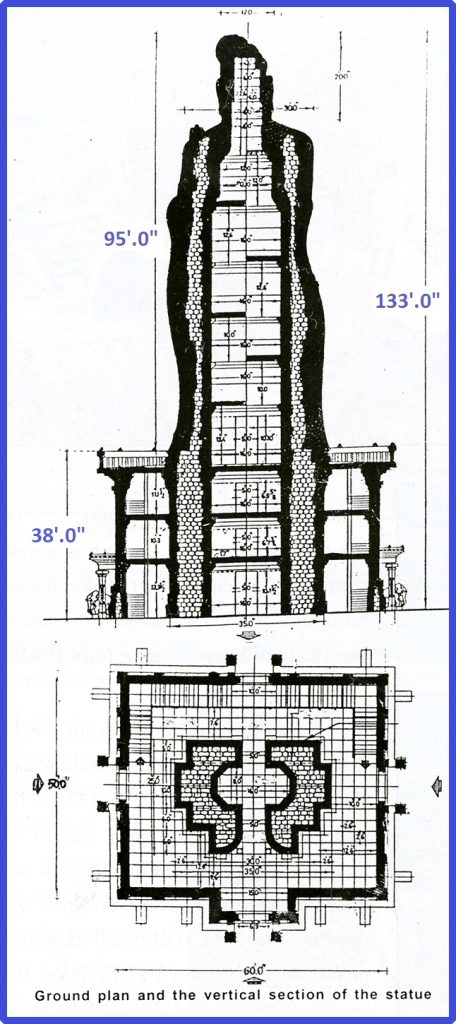 Фото 3: Горизонтальная проекция и вертикальное сечение статуи. (“The colossal statue of Ayyan Thiruvalluvar. Kanyakumari, India”/A Shilpi speaks series-16”, Dr. Ganapati Sthapati, Chennai – 2003, p.17).
